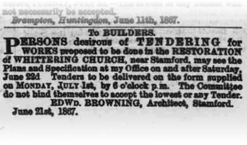 Let’s look at one last classified ad. This one is an advertisement for the tendering of restoration works on Whittering Church: