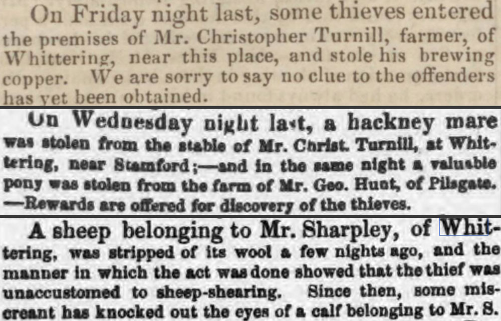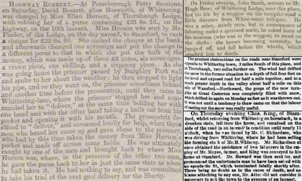 Readership is another consideration. It’s important to remember news wasn’t necessarily being reported for the sake of the residents of Wittering. While local newspapers such as the Stamford Mercury would report on local issues for the local area, there would probably be many aspects of everyday village life that would be considered too mundane to be offered regular column inches. It’s possible only the more dramatic happenings of the village were being reported, so we should bear in mind that these stories are kept in context rather than assuming they formed the meat and bones of everyday life!