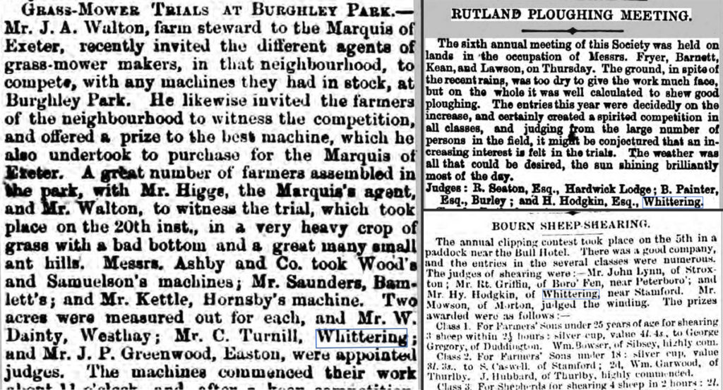 Farmers from Wittering including Mr. Turnill and Mr. Hodgkin appeared as judges at these competitions, highlighting their skill, expertise and good standing in the local community.