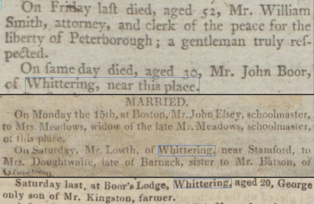 Deciding to leave this battle to be fought another day, I changed tack and considered ways to narrow my search results. I knew that Whittering was an alternative spelling for the village in the past, so attempted a search for this.